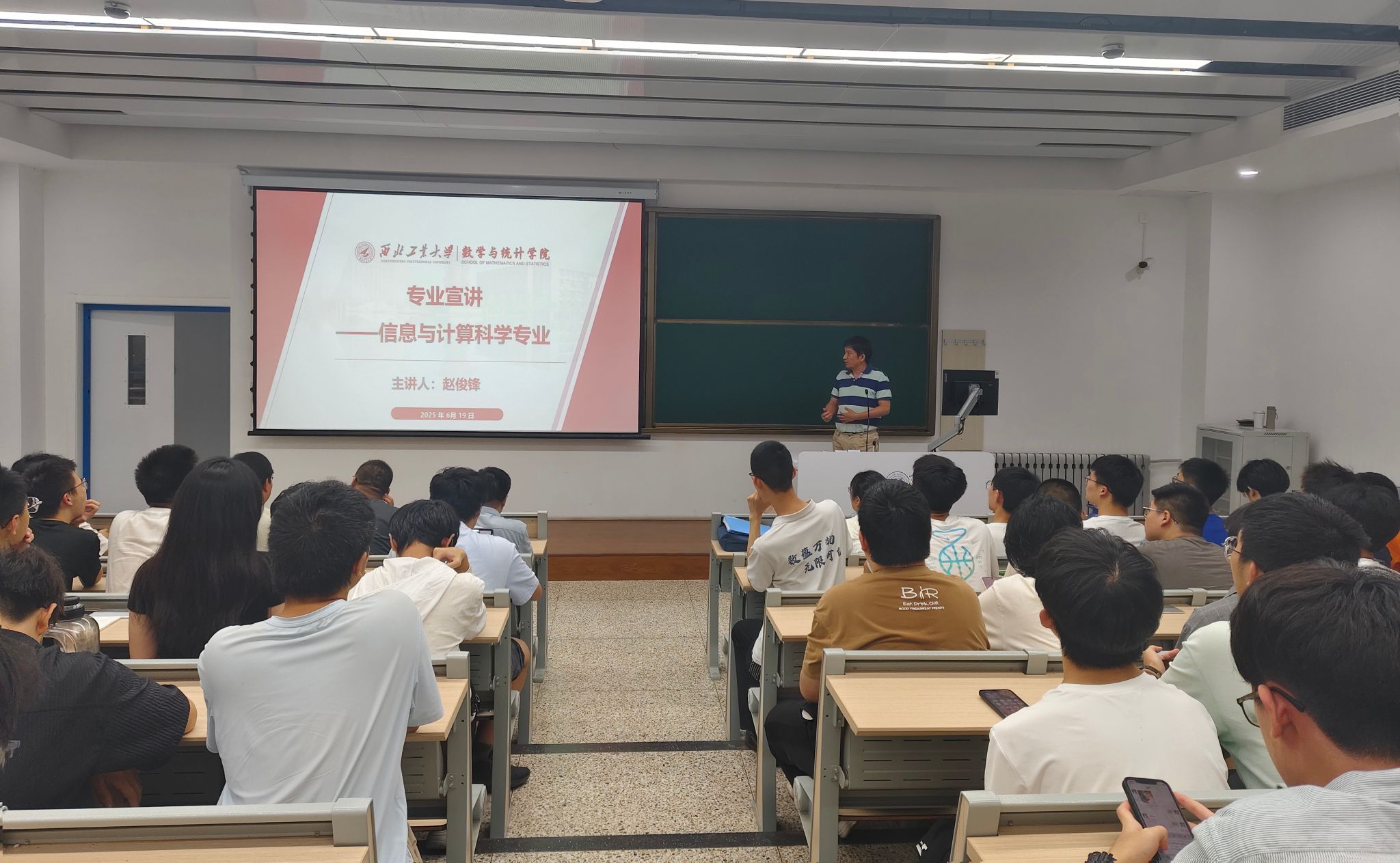 为有效推进“总师育人文化”走深走实,为2024级本科生专业分流答疑解惑,2025年6月19日晚,yl6809永利官网集团在教西B205召开专业宣讲会。副院长郭千桥、院长助理兼2024级辅导员班凯、数学科学系副主任夏健康、计算科学系主任赵俊锋、应用概率统计系主任王亮、教学秘书李彦吉及全体149名2024级本科生参会。会议由郭千桥主持。