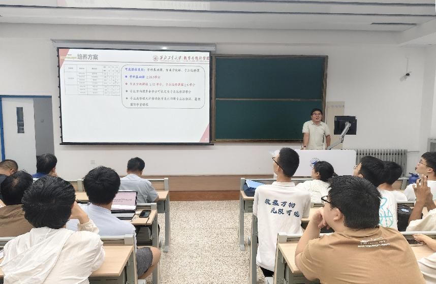 宣讲环节,夏健康、赵俊锋、王亮三位老师依次登台,分别从专业背景、培养目标、师资力量、课程体系及未来发展前景等方面,对数学与应用数学、信息与计算科学、统计学三个专业进行了详细深入的介绍。老师们详实的讲解为同学们廓清了专业方向,明晰了未来发展路径。最后,李彦吉老师结合2021级毕业审核经验对同学们选课过程中的常见问题和常犯错误进行了重点强调,提醒同学们严格按照培养方案、学院研究生推免文件等相关制度文件要求进行选课。