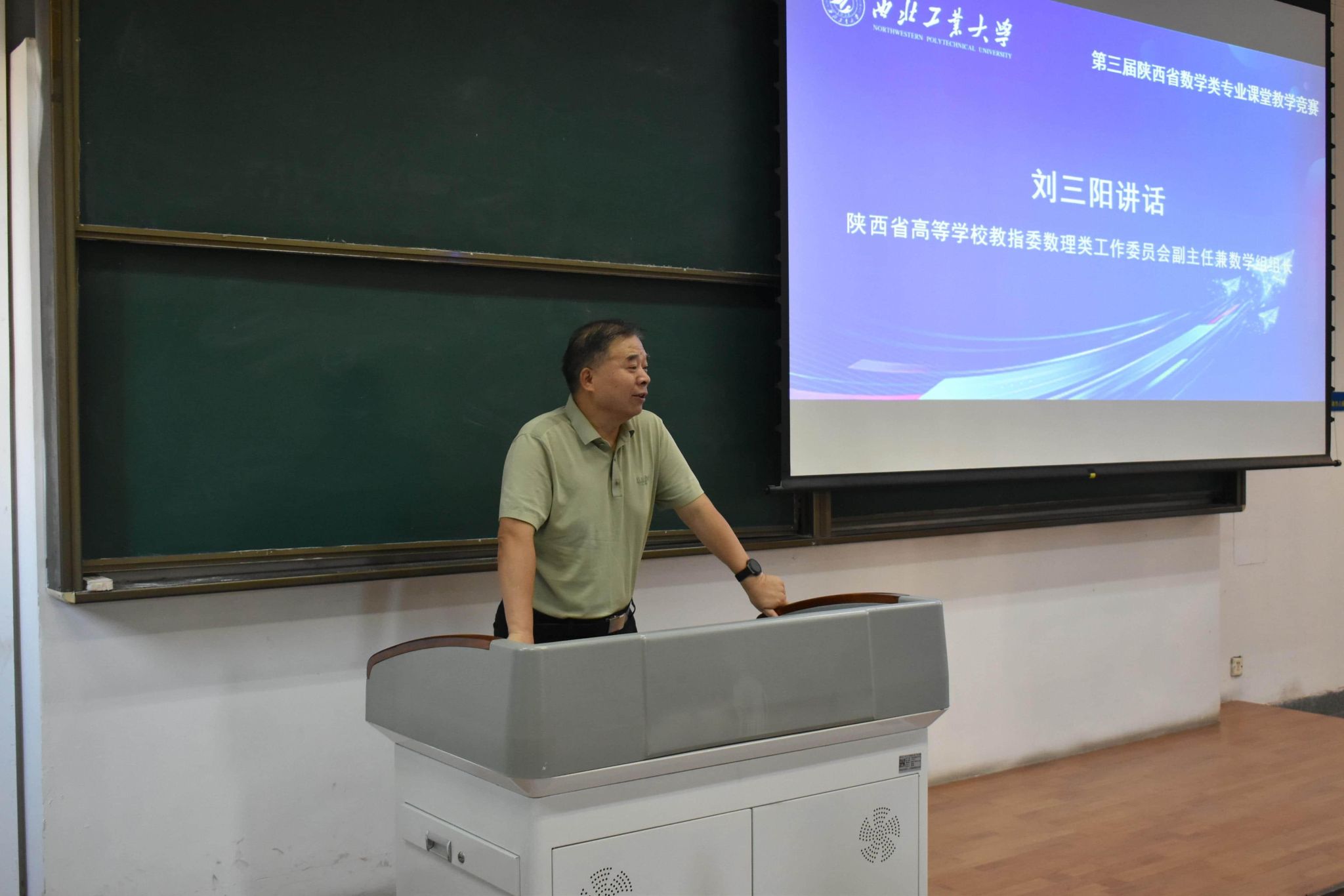 陕西省高等学校教学指导委员会数理类工作委员会副主任兼数学组组长、国家级教学名师刘三阳教授代表竞赛组委会介绍了竞赛组织情况,强调了举办数学专业课堂教学竞赛的初心与意义,详细介绍了初赛实施情况,并对决赛评审流程进行了解读。