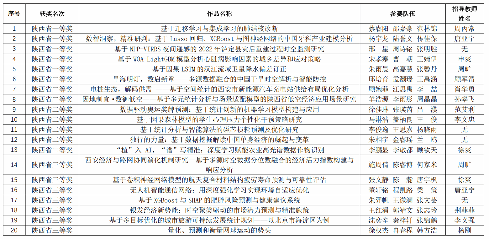本届大赛竞争激烈,陕西省赛区共有1670支队伍参赛。在我校指导教师团队的悉心指导下,参赛同学凭借扎实的专业基础、创新的建模思维和出色的答辩表现,最终脱颖而出,充分展现了西工大学子优秀的学科素养与团队协作精神。