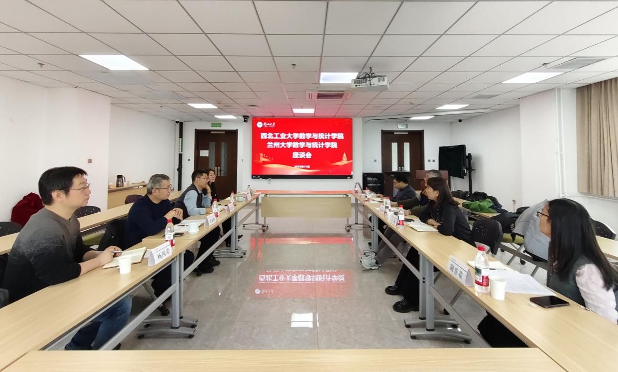 2025年11月7日,yl6809永利官网集团院长聂玉峰、党委书记王莉、副院长郭千桥、计算科学系副主任荆菲菲、教学秘书李彦吉一行赴兰州大学yl6809永利官网集团开展调研交流。兰州大学yl6809永利官网集团党委书记乔振峰、院长邓伟华、副院长马闪、副院长杨四辈、教学秘书张静雅参与座谈。双方围绕党建、数学学科师资队伍建设、数学专业人才培养等议题展开了深入交流与讨论。
