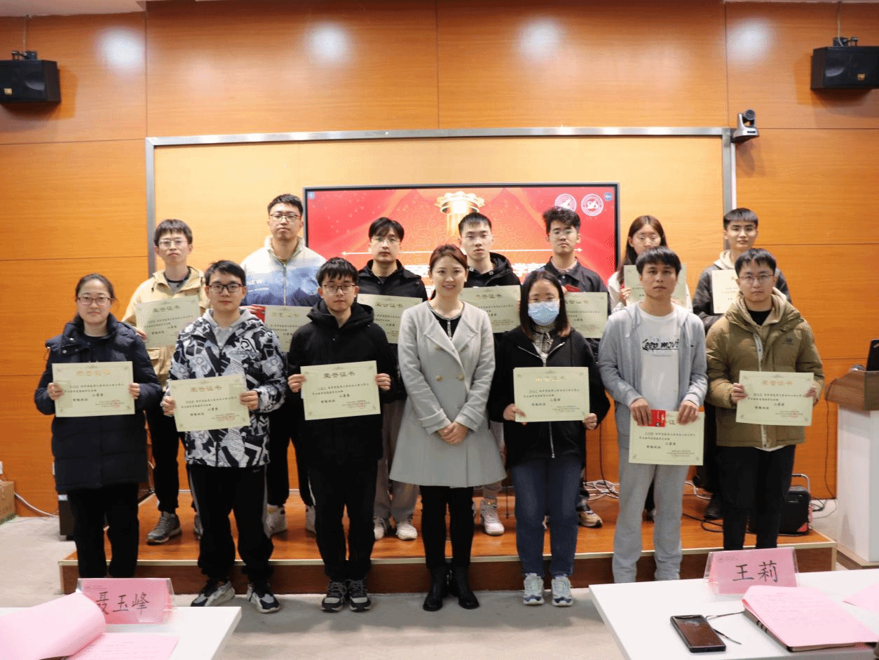 随后,与会领导为获奖学生颁发证书及奖品并合影留念。