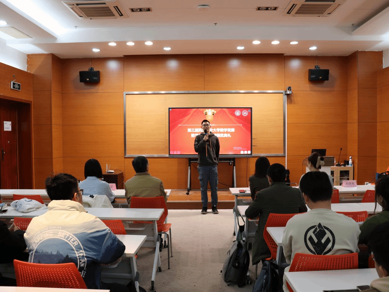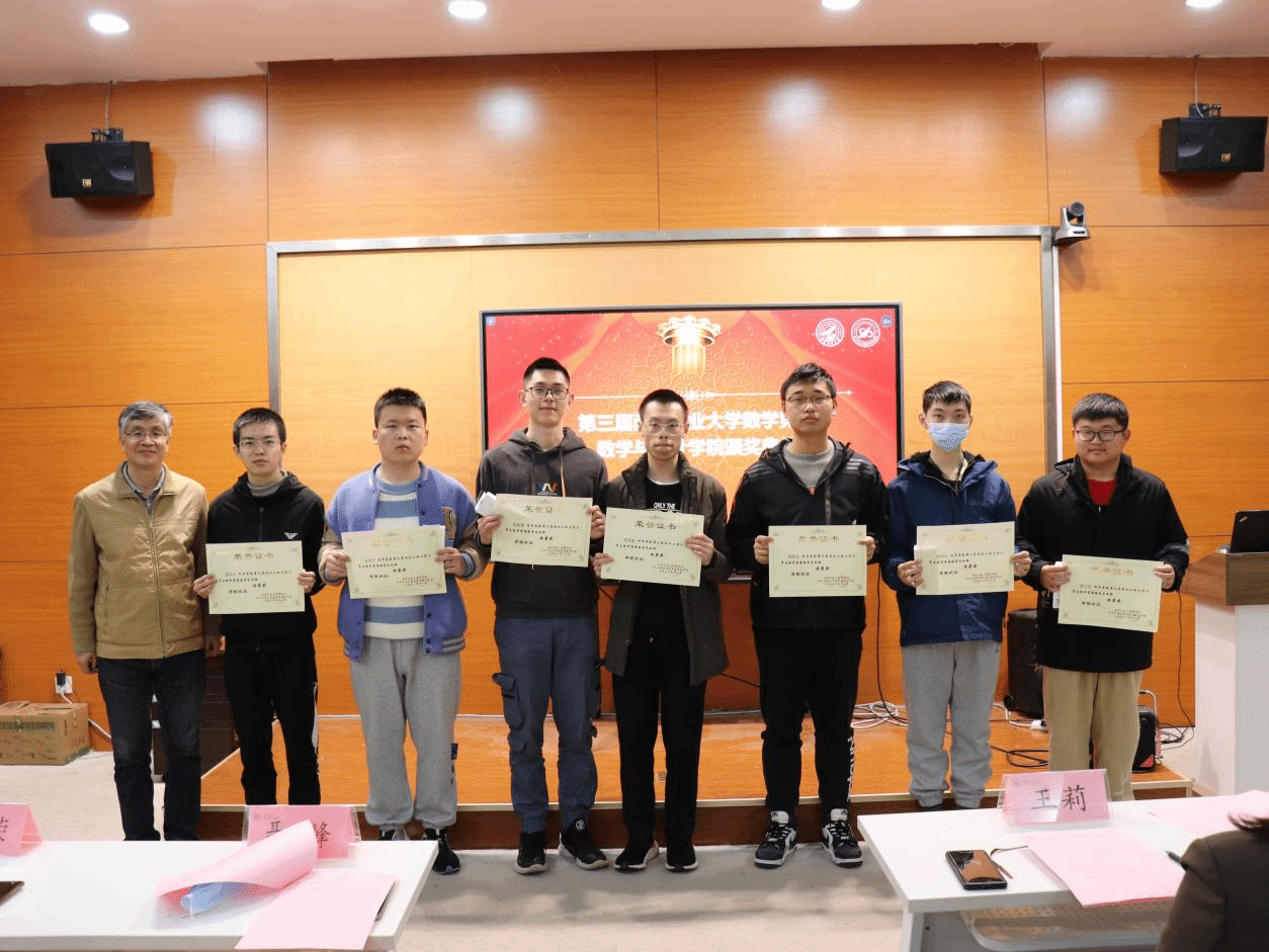 在颁奖仪式上,聂玉峰院长对获奖同学表示祝贺,提出广大学生要以数学竞赛为契机,激发数学学习兴趣、培养数学学习能力,通过数学学习不断提升整体思想和大局意识。同时,他还鼓励获奖学生能够学数学、爱数学、用数学,在生活中彰显数学智慧。