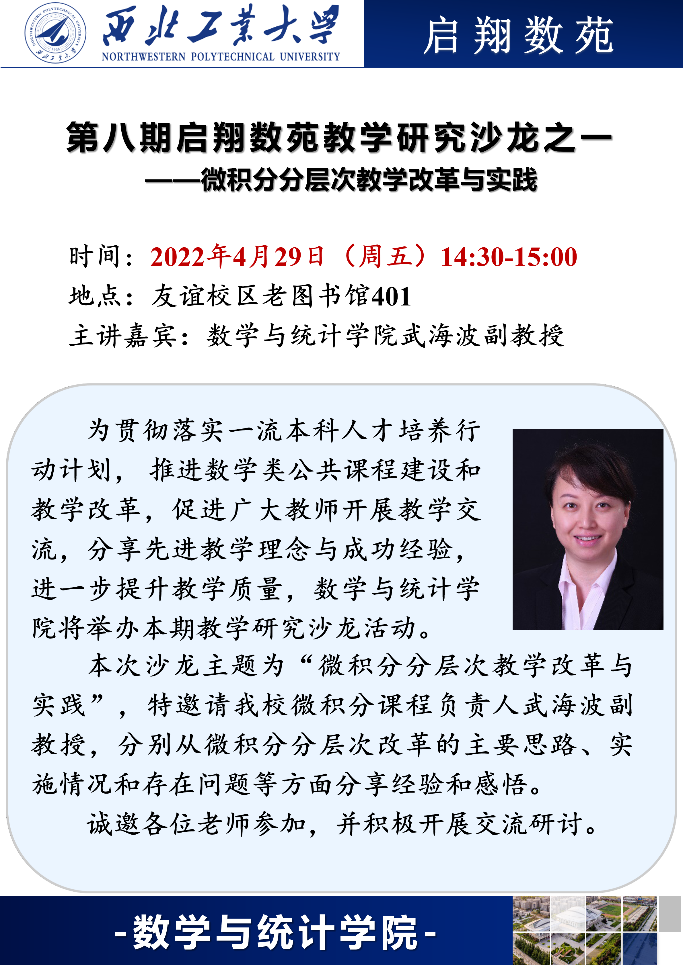 为贯彻落实一流本科人才培养行动计划,推进数学类公共课程建设和教学改革,促进广大教师开展教学交流,分享先进教学理念与成功经验,进一步提升教学质量,yl6809永利官网集团将举办第八期教学研究沙龙活动。