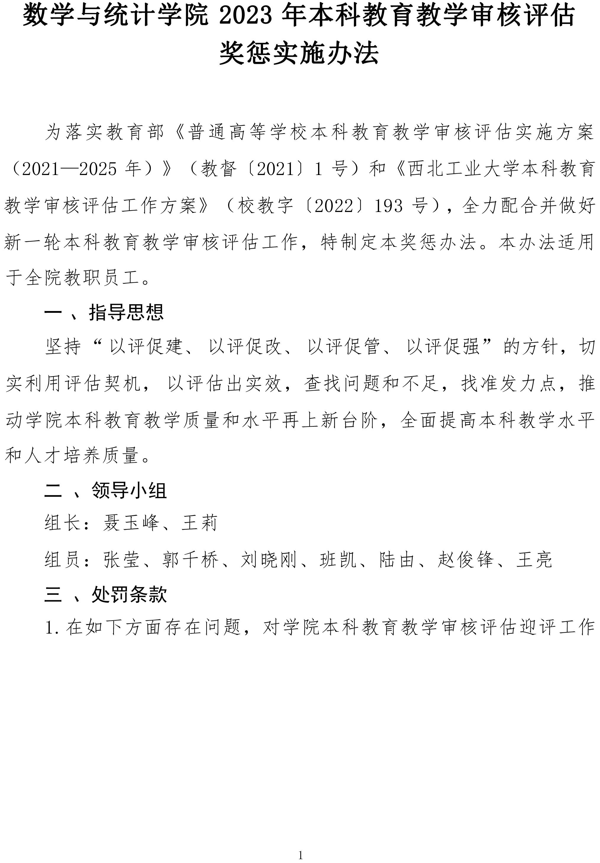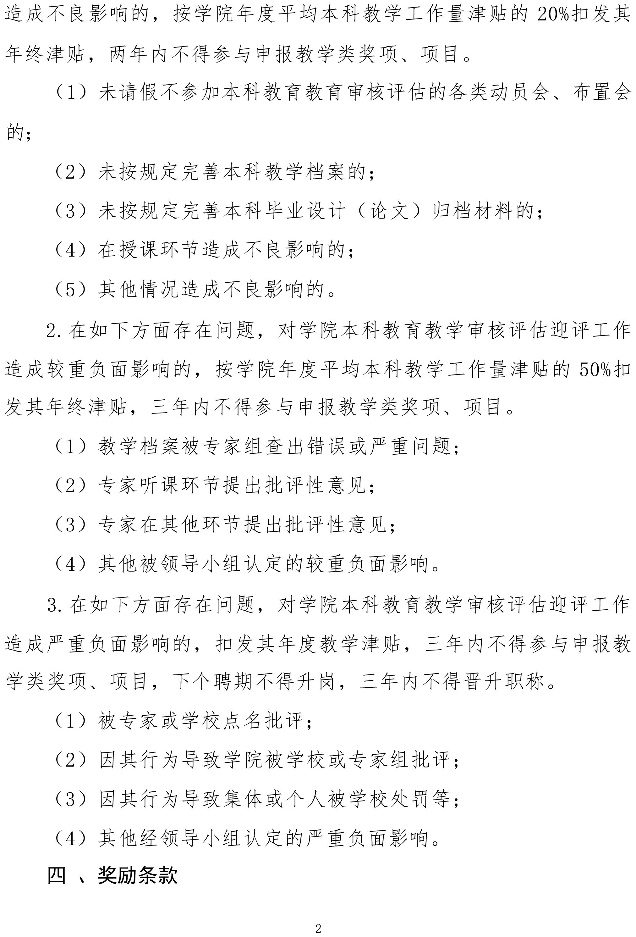 yl6809永利官网集团 2023 年本科教育教学审核评估奖惩实施办法