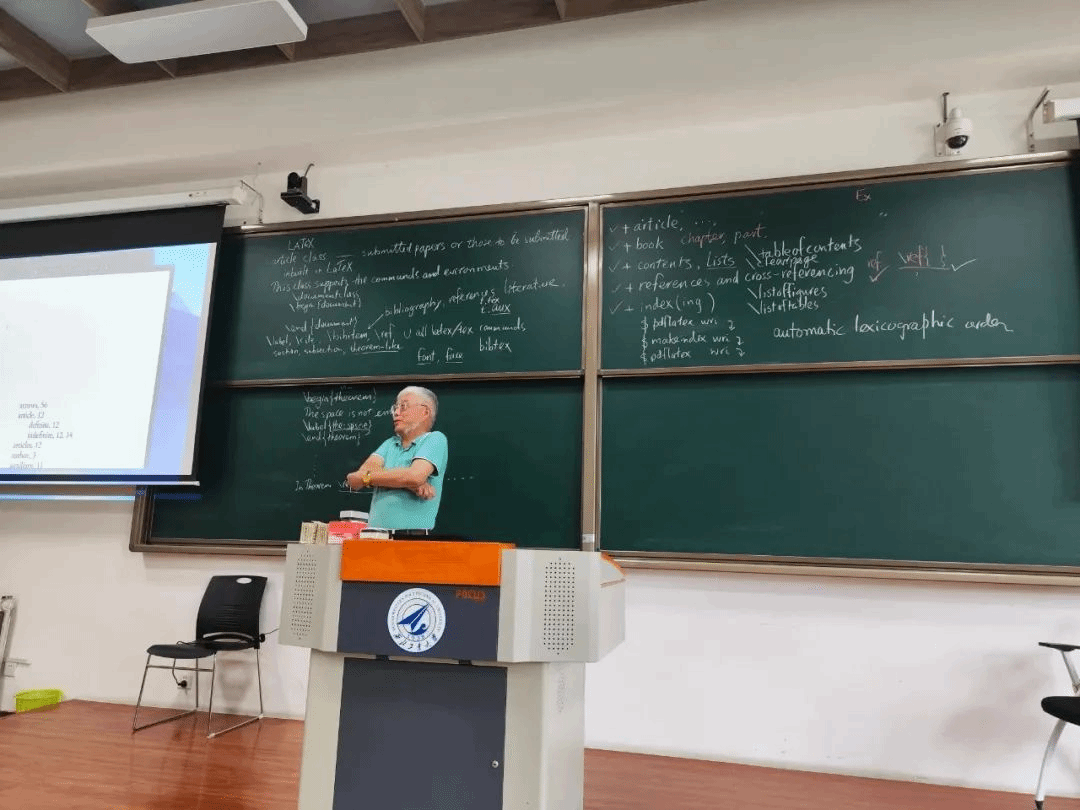 24学时的英文课程涵盖了两部分内容。第一部分是科技英文写作,宝升教授从用词、语法、短语、句子讲到段落,层层递进,针对易错问题进行专门讲解和讨论。在讲到段落时,宝升教授特别剖析了著名数学家希尔伯特在1900年的数学家大会上演讲的英文译文,使同学们从字里行间体会到数学大师的谦逊和远见。第二部分是Tex/LaTex编辑工具的使用。内容涵盖了常用知识点,包括文档类型的选择、数学公式与符号的使用、图形及表格的生成和插入、定理环境和章节目录的设置等。