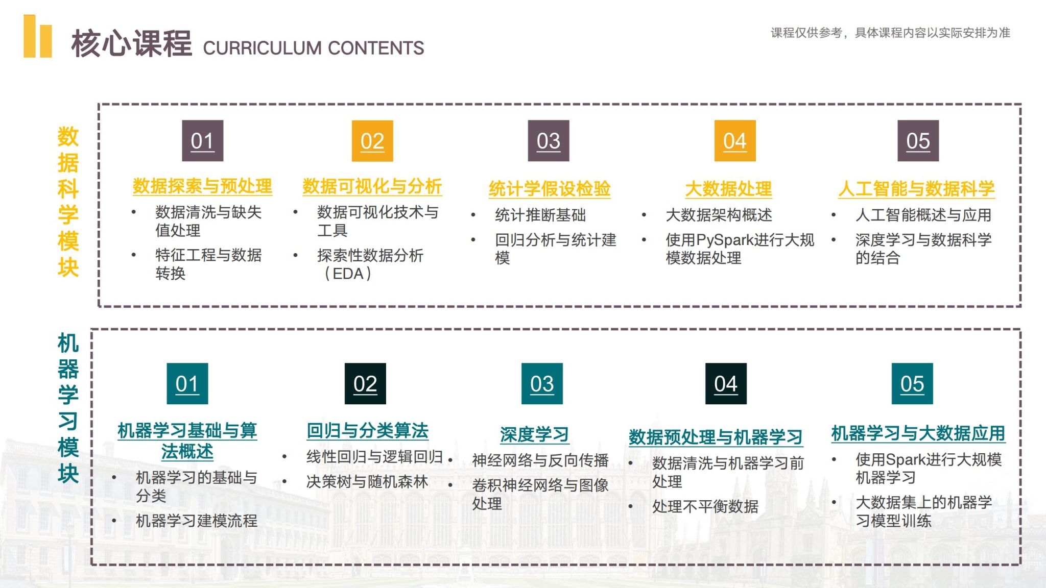 项目将在剑桥大学莫德琳学院(Magdalene College)举办,融合顶尖学术资源与前沿实践,致力于培养全球化视野的创新型人才。项目分为数据科学和机器学习两大模块,并结合实践课题“交叉学科项目实践”,学生将从数据清洗到模型设计和结果可视化,全面体验从理论到实践的转化过程。此外,项目还包含剑桥大学重点实验室与行业合作伙伴的参访活动,结合其独特的学院制文化,培养学生的跨学科思维与全球胜任力。