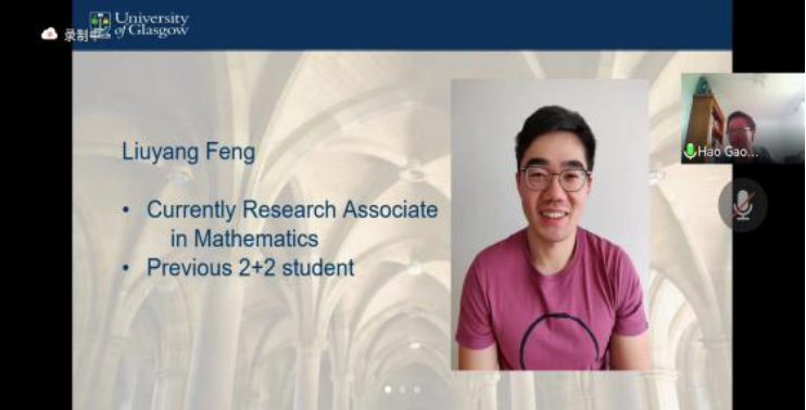 同时,英国格拉斯哥大学yl6809永利官网集团院长Ian Strachan教授也隆重出席了本次会议。数统学院国际化负责人高昊教授围绕学校发展,学科特色,校园生活以及录取要求等方面展开了详细介绍。同时就学校2+2项目情况进行专门讲解,结合良好的学校学习科研环境和氛围,以我校优秀留学生冯留洋为例,鼓励大家积极申请。