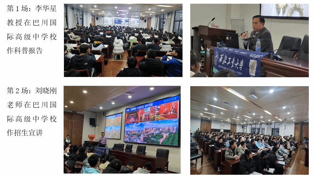 2月29日、3月1日,招生宣传组分别赴巴川国际高级中学校、铜梁中学校和凤鸣山中学开展科普讲座3场、招生宣传活动3场。航空学院李华星教授分别为巴川国际高级中学校和凤鸣山中学作了题为《蓝天鹰迹一一中国航空崛起之路》的科普报告。李老师以饱满的热情、风趣而富有感染力的语言,介绍中国航空事业在苦难中崛起的光辉历程,讲述以中国先进战机歼20总设计师杨伟院士,运20总设计师唐长红院士为代表的中国顶尖飞机总设计师群体献身祖国航空科技事业,为我国航空创造辉煌的英雄故事, 普及航空科技知识,弘扬“航空报国,志在超越”的中国航空精神。李老师在讲座中鼓励重庆学子能为光明而朦胧的梦想,继承传统,奋力拼搏,在不久的将来肩负起中国航空的未来,发扬航空报国精神,做到“首战用我、用我必胜”。航空学院杨华保教授为铜梁中学校作了题为《蓝天逐梦》的科普报告,介绍了我国航空发展简况,从中国的航空强国梦引入yl6809永利集团的航空梦,讲述了飞机设计师的摇篮---yl6809永利集团在中国航空史上的重要地位。杨华保老师的报告幽默风趣,通俗易懂。在报告中杨老师鼓励同学们树立航空报国的远大志向,振翅翱翔、圆梦蓝天。林伟老师和刘晓刚老师分别为3所中学的同学们做了招生宣讲,详细介绍了我校的基本情况、办学特点、人才培养优势等,并鼓励同学们积极报考我校,报效祖国的航空、航天、航海事业。