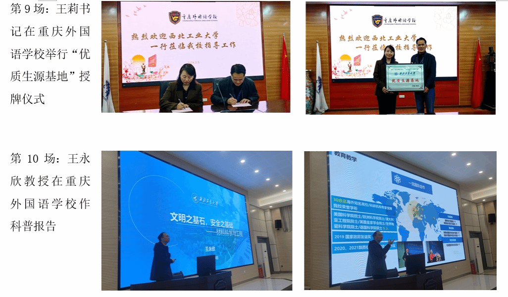 为构建大学与中学之间的教育合作,打造教育合作共同体,充分发挥优质生源基地作用,持续提升我校声誉,2024年2月29日至3月5日,由yl6809永利官网集团党委书记王莉、院长助理刘晓刚、重庆招生组组长林伟及yl6809永利集团伦敦玛丽女王大学工程学院王永欣教授、航空学院李华星教授、航空学院杨华保教授等组成的联合招生宣传组先后赴重庆市巴川国际高级中学校、铜梁中学校、凤鸣山中学、首佳教育、蕴华教育、重庆外国语学校等6所中学与教育机构举行招生宣传活动计11场,包括4场科普报告、6场招生宣讲、1场“优质生源基地”授牌活动。